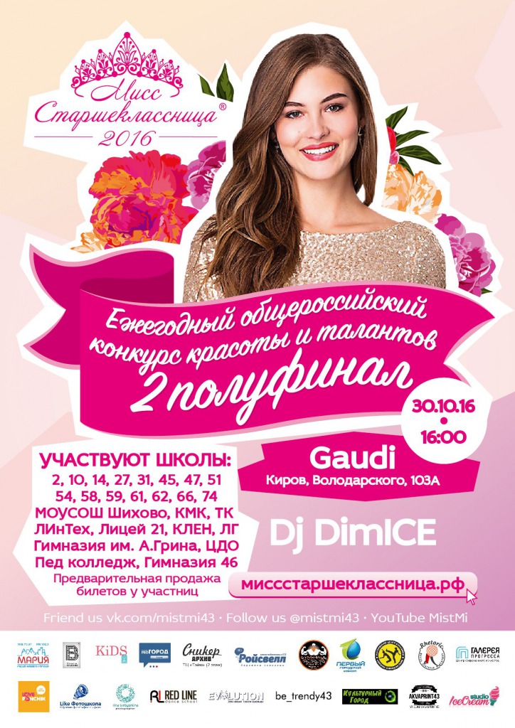 Официальный сайт конкурса: миссстаршеклассница.рф. Все подробности о конкурсе здесь: mistmi43.