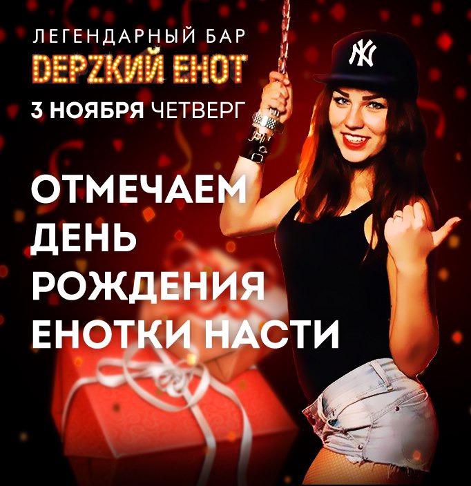 Друзья, начало ноябрьских праздников мы отмечаем с двойным усердием! Именно в этот день какое-то время назад родилась одна из звезд нашего бара, умопомрачительная рыжая бестия Настя! Нет ничего лучше в праздничный день, чем оказаться в любимом баре и от души поздравить именинницу! Приходим с цветами, подарками, обязательно в хорошем настроении. Именинница будет проставляться, принимать поздравления, танцевать и веселиться вместе со всеми. Ждем тебя, поздравь Настю лично, ей будет очень приятно. И главное, никогда не знаешь, что ожидать от этой горячей красотки в тот или иной момент, а уж сюрприз она подготовит и не один! Не забывай от акции на кухню, в этот четверг! Скидка будет равна твоему возрасту, так что пользуйся на здоровье!