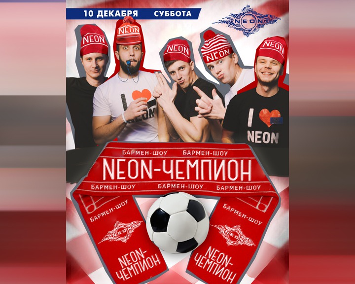 - Дорогие друзья! Мы решили показать вам, что спорт и веселый ночной отдых совместимы! Наши бармены докажут всем, что можно быть ловким, сильным и выносливым, причем благодаря огромному ассортименту напитков, как бы парадоксально это ни звучало. Crazy подачи, веселые эстафеты, индивидуальные и командные конкурсы, специальный реквизит, костюмы и антураж, радость побед и, конечно, сексуальные бармены ждут вас в эту субботу в РЦ NEON! Всю ночь вы можете наслаждаться замечательными паровыми коктейлями под хорошую музыку. Ждем тебя!
