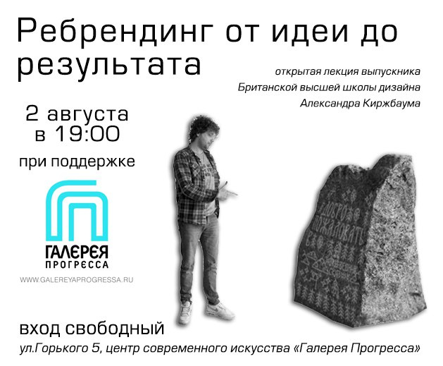2 августа в 19:00 в ЦСИ "Галерея Прогресса" пройдет увлекательная лекция "Ребрендинг - от идеи до результата". Во время лекции спикер продемонстрирует создание брендбука на примере смены дизайна для интерактивного парка “Заповедник сказок” компании “Летучий корабль” (Киров).