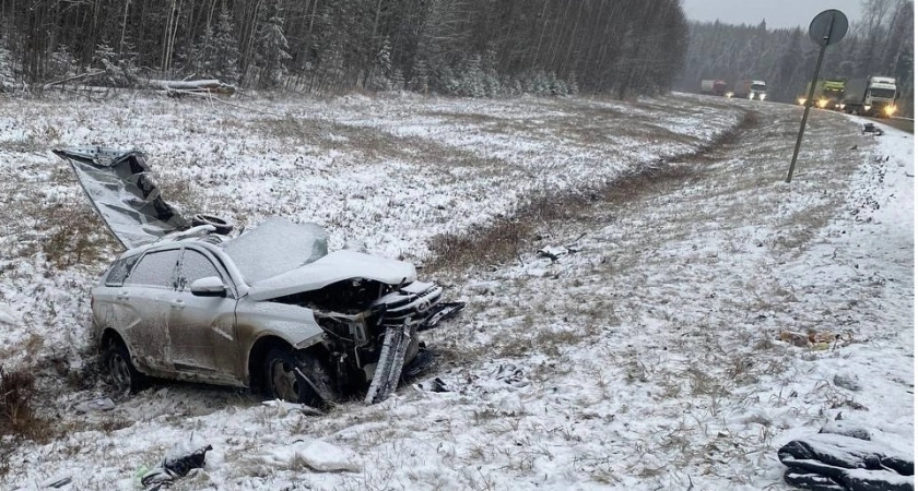 В 20 километрах от поселка Афанасьево в сторону Перми водитель легкового автомобиля LADA Vesta потерял контроль над управлением и выехал на встречную полосу, где машина столкнулась с грузовиком.