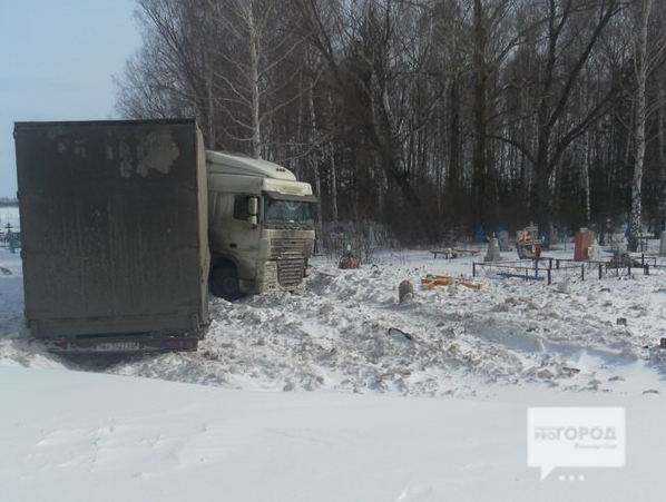Грузовик больше суток стоит на кладбище, потому что спецтехники, чтобы вытащить его, нет