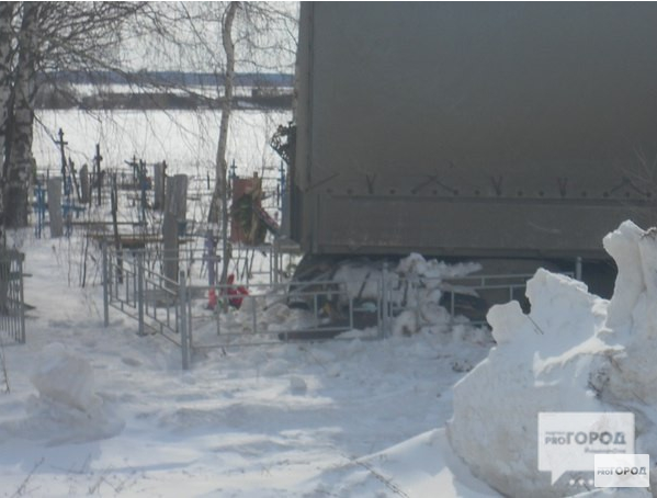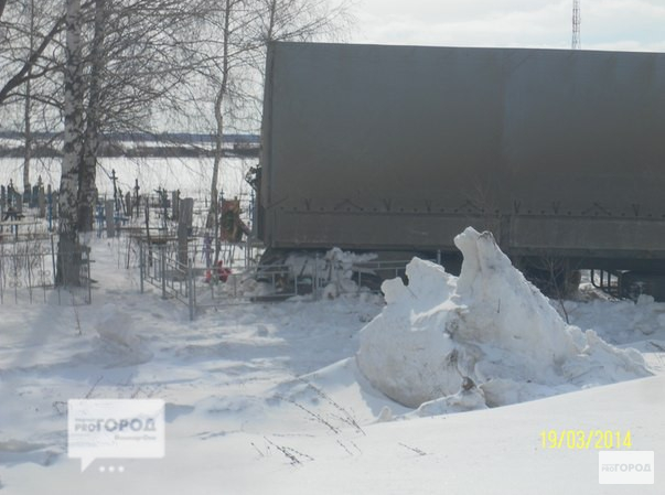 Фура снесла несколько оградок, памятников и крестов, сложилась почти пополам и застряла в снегу прямо на могилах.