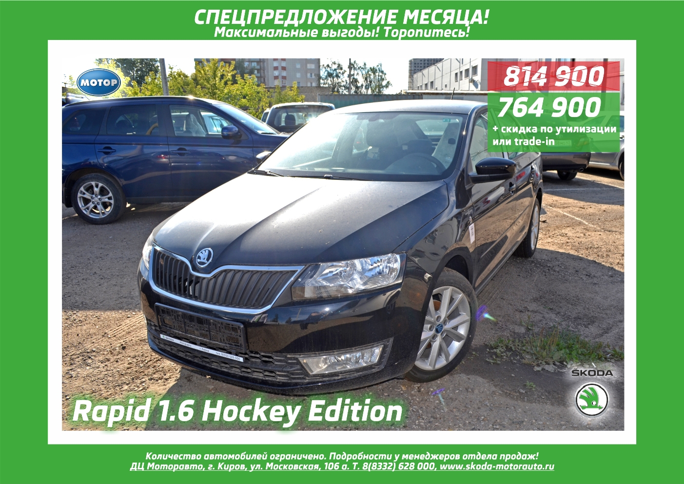 * Количество автомобилей ограничено. Сроки и подробности акции в отделе продаж. Не является публичной офертой. Ежемесячный платеж по кредиту в сумме 4999 рублей означает величину затрат клиента, взявшего кредит по программе кредитования ООО «Фольксваген Банк РУС» (далее — «Банк») «ŠKODA Octavia, Rapid, Yeti с остаточным платежом» на покупку нового автомобиля ŠKODA Rapid с расчетной розничной ценой 609600 рублей, на срок 36 месяцев, с первоначальным взносом 257100 рублей (42,18% от стоимости автомобиля), остаточным платежом 240000 рублей (39,37% от стоимости автомобиля) и процентной ставкой 7,5% годовых при предоставлении полного пакета документов. Данная информация не является офертой Банка, расчет является приблизительным. Полная стоимость кредита и конкретные параметры кредита будут рассчитаны на основании анкеты клиента.