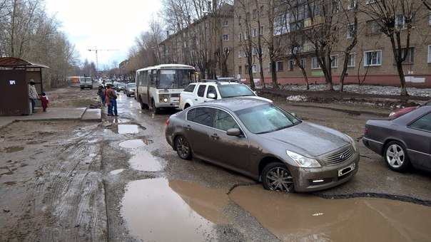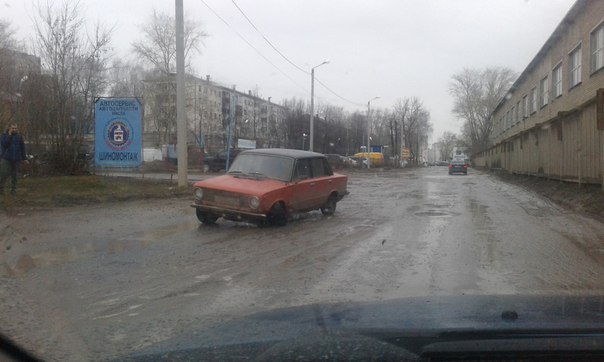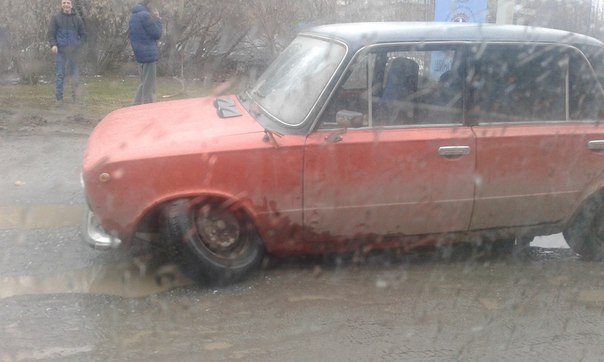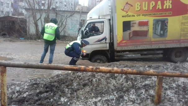 Большинство, зная о состоянии кировских дорог весной, ездят как можно аккуратней, но некоторые водители не могут избежать ДТП и попадают в огромные ямы.