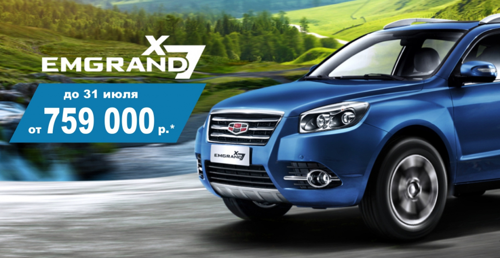 До конца июля вы сможете приобрести Geely Emgrand X7 со скидкой 78 000 рублей** под 6% годовых.