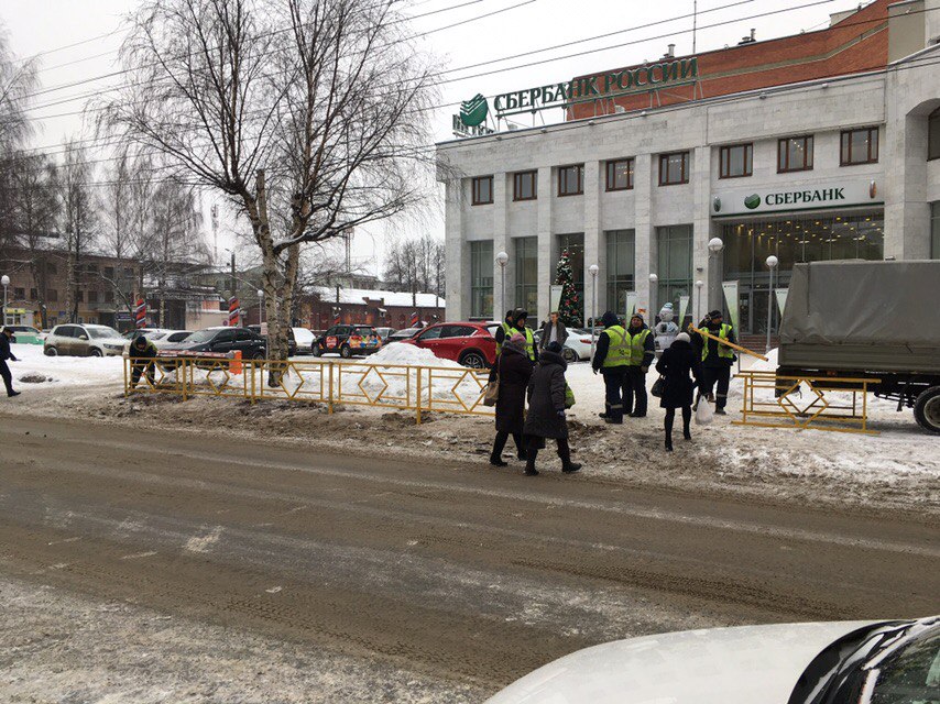 Много лет перед входом в банк располагался так называемый "народный" пешеходный переход. Для кировчан здесь было удобно из банка сразу же попасть на Театральную площадь. Люди там просто перебегали дорогу в неположенном месте. Однако официально пешеходный переход находится через несколько десятков метров - на перекрестке улиц Дерендяева и Преображенской. Теперь жители всегда будут переходить там улицу.