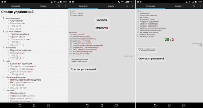 Еще одно полезное приложение для перехода на новый уровень владения русским языком. Программа помогает повторять основные грамматические правила и по отдельным курсам (например, «имя существительное») и по нескольким направлениям в режиме «тренировка». При этом к каждому вопросу теста полагается подсказка, в которой указано нужное правило.