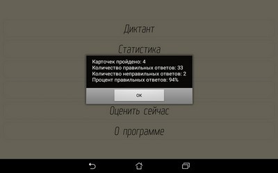 Это приложение не будет ставить оценок, зато точно подсчитает количество верных и неверных ответов во всех текстах, которые вы пройдете. Будет особенно полезным не школьнику, а взрослому, который хочет проверить уровень знания русского языка.