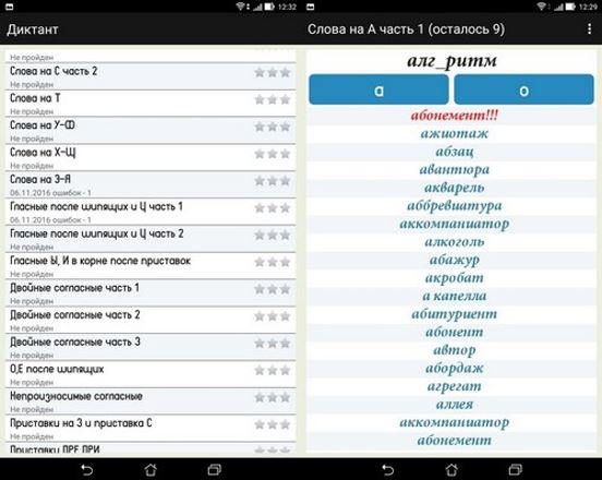 В этом приложении вас ждет не не просто диктант, а диктант словарный. Вы можете выбирать слова на определенное правило или проверить себя на орфограммах. Пригодится каждому, кто захочет проверить себя и расширить словарный запас.
