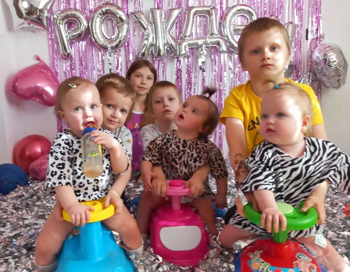 Анастасия Сычевы впервые стали родителями 20 лет назад. Первенца назвали Максим, позднее появилась дочка Влада, ей сейчас 11 лет, после родились три сына: Егору - девять, Тимофею - семь, Кириллу - четыре года. Полтора года назад у пары родились тройняшки Карина, Каролина и Катарина.