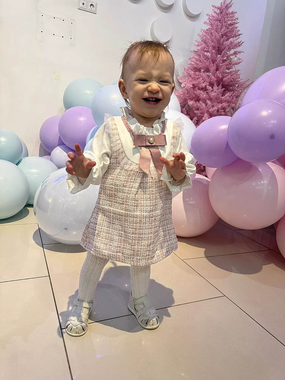 Сейчас Николь полтора года. Малышка начала сидеть, ползать и вставать у опоры в десять месяцев, а недавно сделала первые шаги.