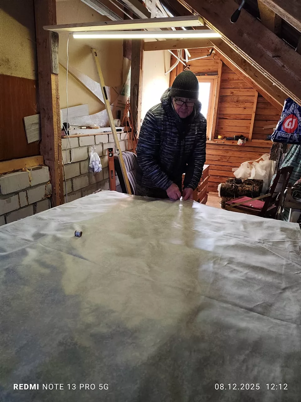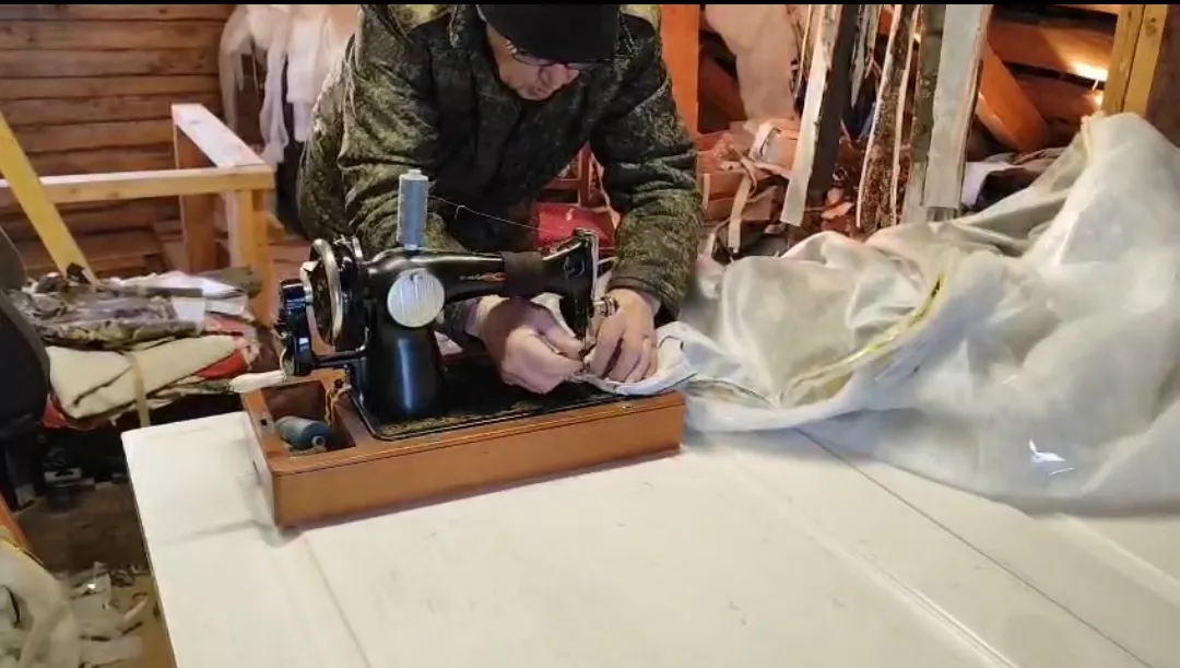 Встает в 5:00 и уходит шить в гараж. Отвозит внуков в школу и секции, а потом возвращается домой к изготовлению одеял. Покрывала называем "сэндвичами", так как они состоят из шести слоев (ткань, фольга, спанбонд). Такие материалы позволяют обойти системы тепловизоров на дронах (человека под таким одеялом не видно), а спанбонд сохраняет тепло в холодные ночи.