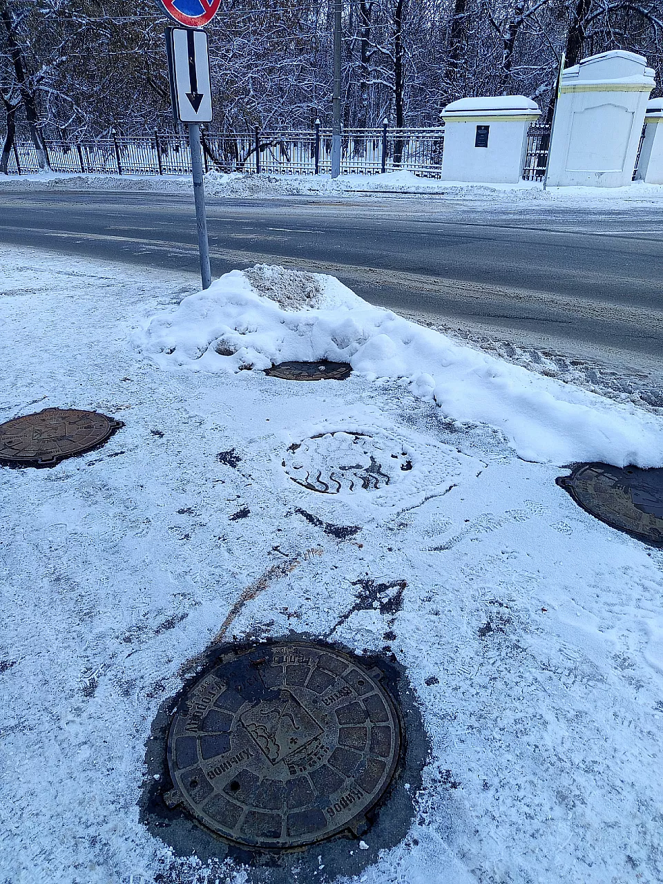 Топчут герб. Отец Андрей Лебедев обратил внимание на изображения на люках в середине декабря.