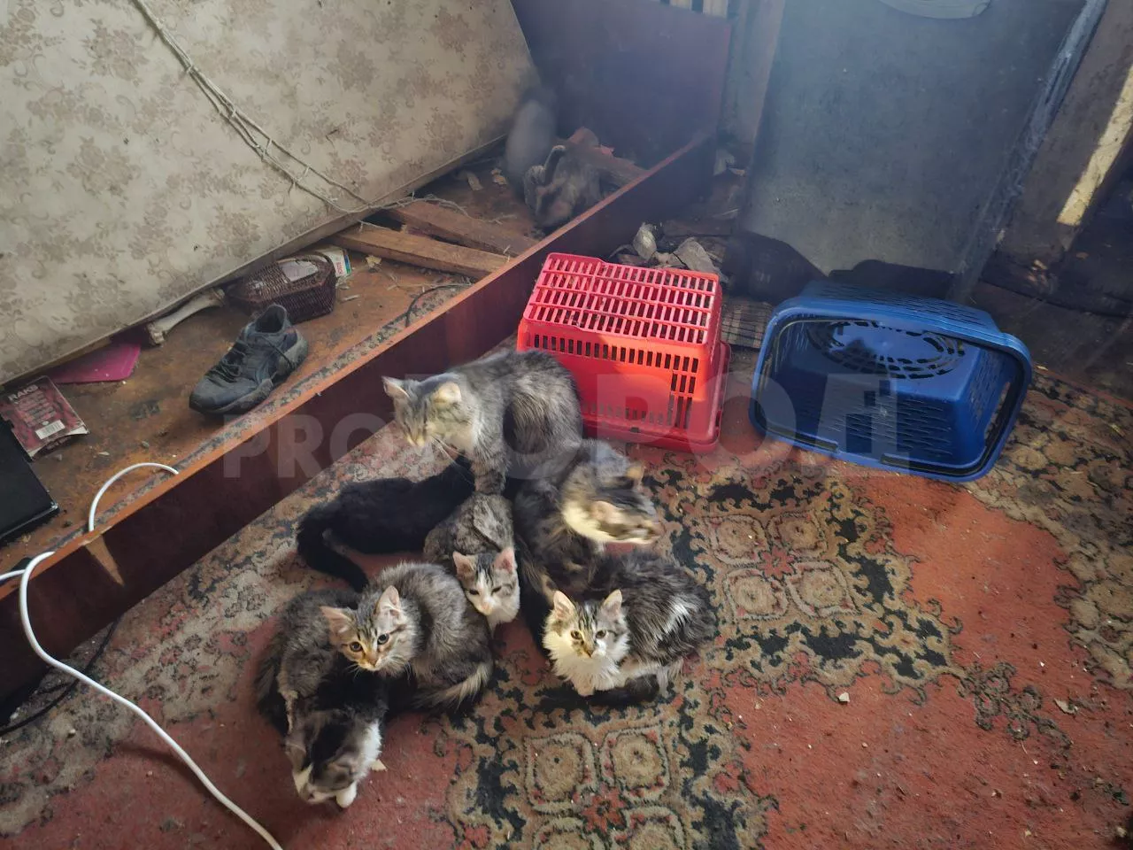 Волонтеры подготовились, привезли с собой 10 переносок. Однако их не хватило. В квартире осталось еще пять животных. Сергей помогал выносить котят.