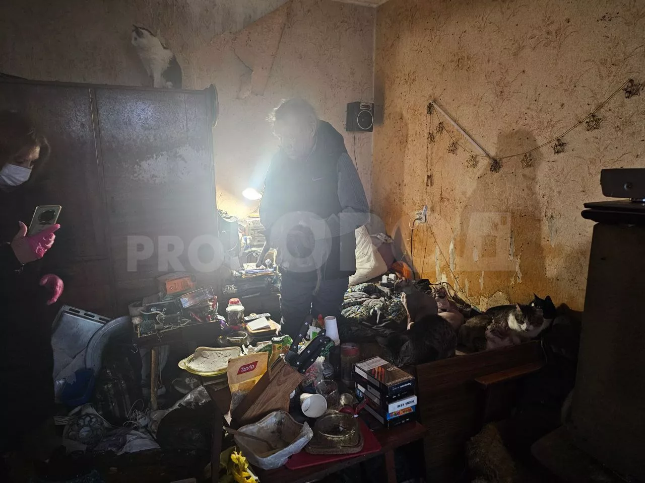 Источником антисанитарии стала квартира соседа Сергея. Мужчина не только тащил к себе в квартиру весь хлам с улицы, но и подбирал кошек и приносил домой.