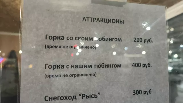 2 января кировчане заметили табличку в парке, что теперь катание с горки на своем тюбинге стоит 200 рублей, а с арендой "ватрушки" - 400 рублей. Также отдельной статьей расходов выделили снегоходы - 300 рублей.