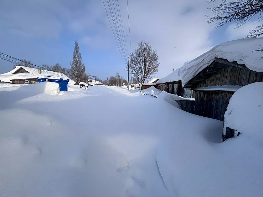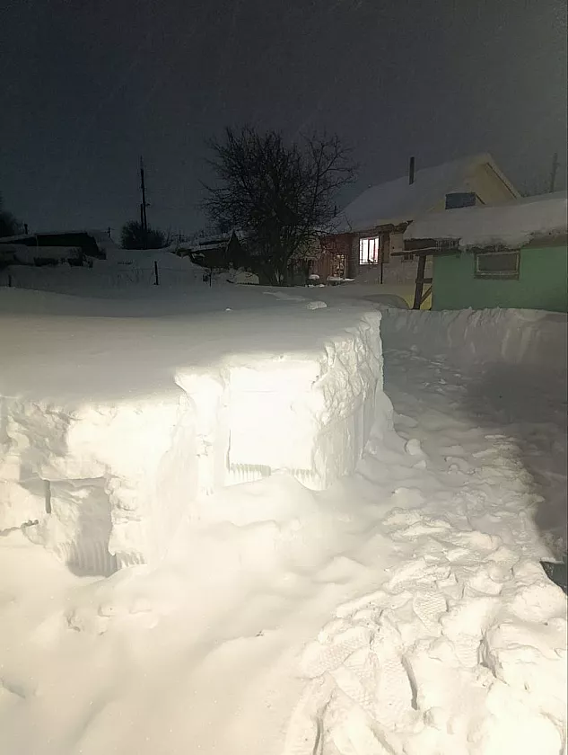 Снегопад в районе. В поселке Медведок Нолинского района сугробы заблокировали выходы местных жителей из домов. Высота снежного покрова в поселке достигает метра и является рекордом по всей области.