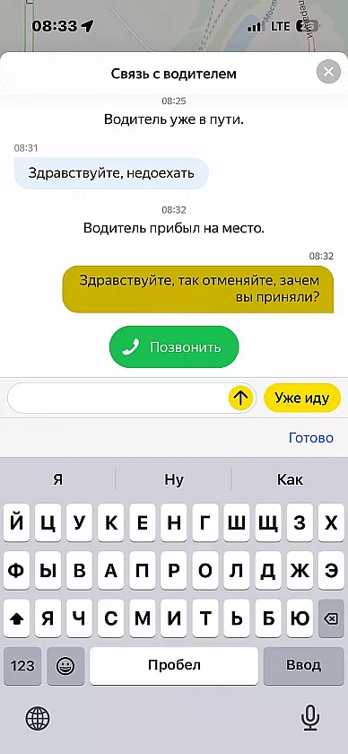 Один водитель принял заказ, но написал: "Не доехать". Цены тоже загнули на проезд. Если обычно стоит доехать до ЦУМа от Потребкооперации стоит 200-300 рублей, 2 февраля утром ко мне не приехали даже за 600 рублей.