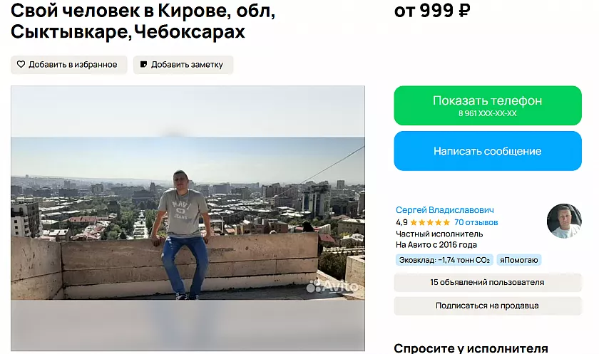 Пользователь Авито опубликовал, что может помочь жителям других регионов решить проблемы в Кирове. В список услуг входят: