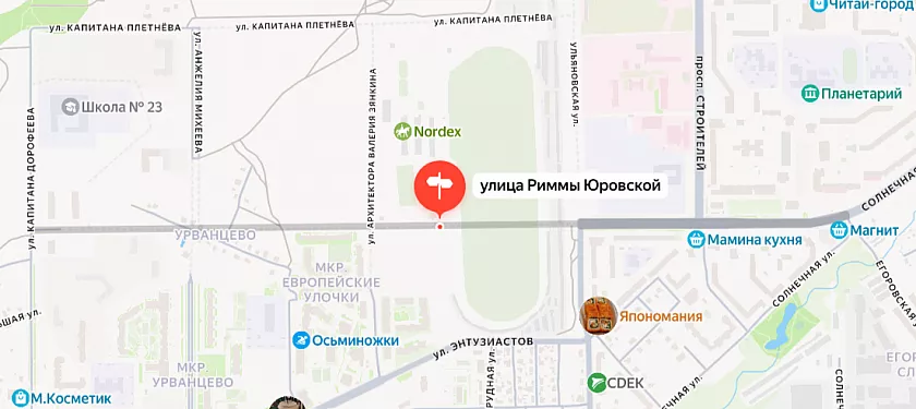 Улица Риммы ЮрОвской (улицы соседи - Капитана Дорофеева, Солнечная, проспект Строителей)