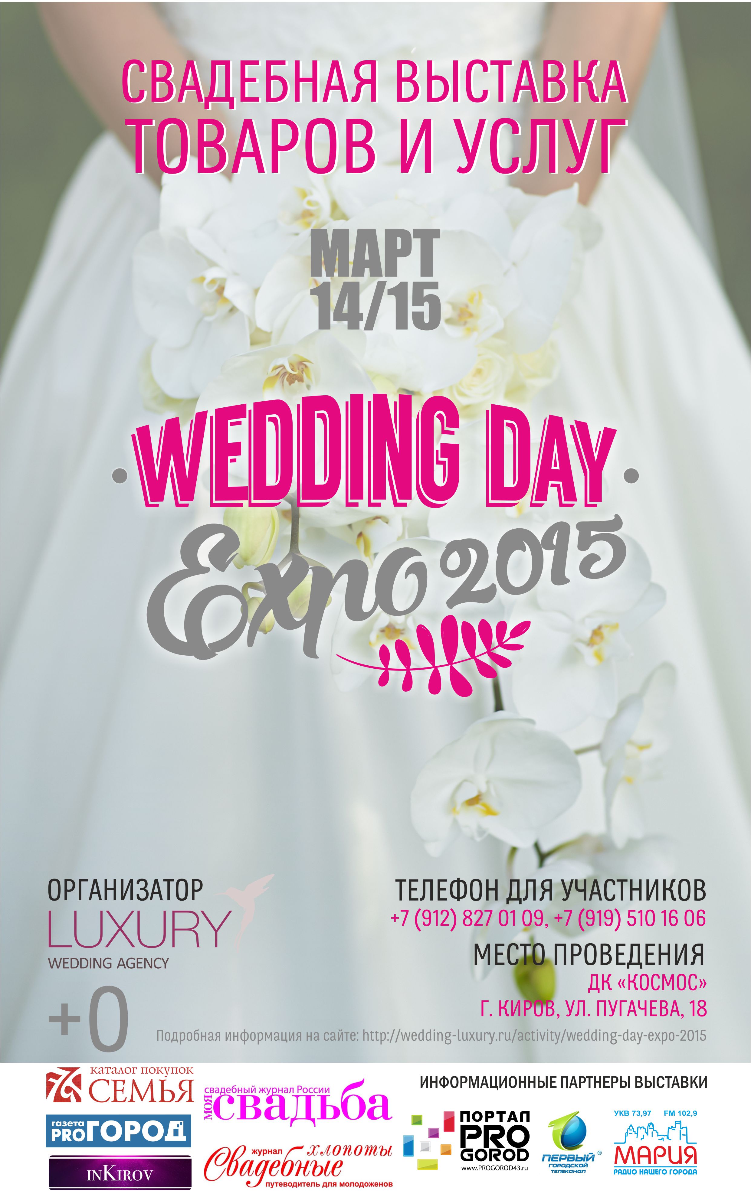 14-15 марта 2015 года в Кирове, в Городском дворце культуры «Космос» состоится ежегодная выставка свадебных товаров и услуг WEDDING DAY EXPO 2015