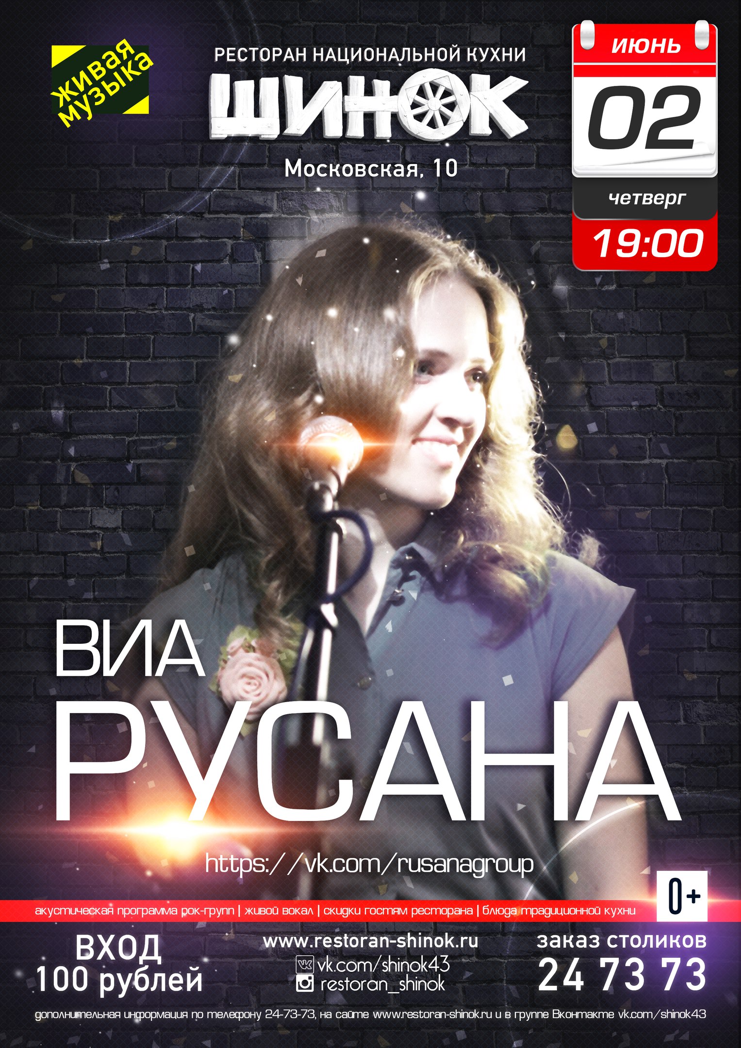 Приглашаем на творческий музыкальный вечер с ВИА Русана. Хорошая компания, душевные песни и приятная атмосфера в июньский четверг обеспечены.