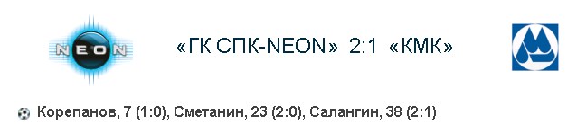 Игра между «СПК-NEON» и «КМК» получилась боевой, с характером, по мужски. Обе команды боролись, старались, заслуживали того, что бы взять какие-нибудь очки. Первый тайм полностью остался за хозяевами. Они больше атаковали, за что были и вознаграждены. На 7-й минуте после хорошей комбинации в несколько пасов, счет открыл Корепанов Евгений. А на 23-й минуте мощным, сильным ударом под перекладину Сметанин Алексейудвоил преимущество. Во втором тайме игра успокоилась. У одних не получалось, другие не хотели. Так продолжалось до 38-й минуты, пока Салангин Олег с розыгрыша углового один гол отыграл. После этого гола, у молочников открылось второе дыханье, они заиграли с новой силой, но восстановить паритет так и не смогли.