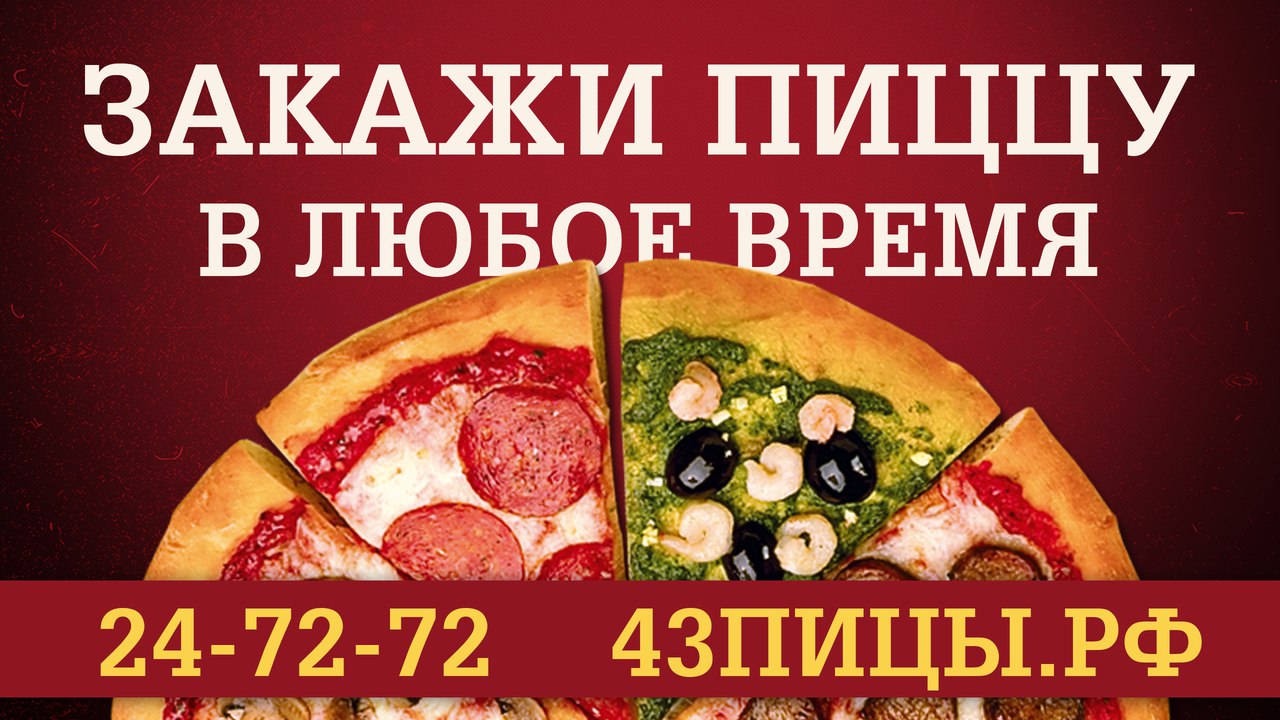 Закажи пиццу по телефону: 24-72-72 или на сайте 43ПИЦЦЫ.РФ