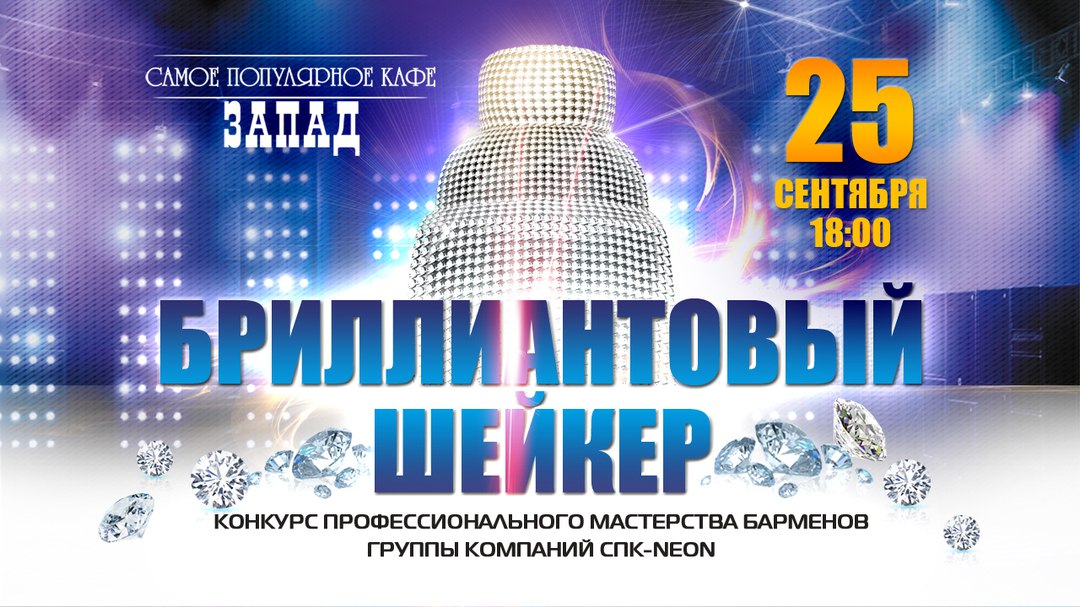 25 сентября в 18.00 в СПК Запад по адресу: ул. Ломоносова, 25 пройдет финал второго ежегодного конкурса профессионального мастерства среди барменов ГК СПК NEON под названием «Бриллиантовый шейкер».