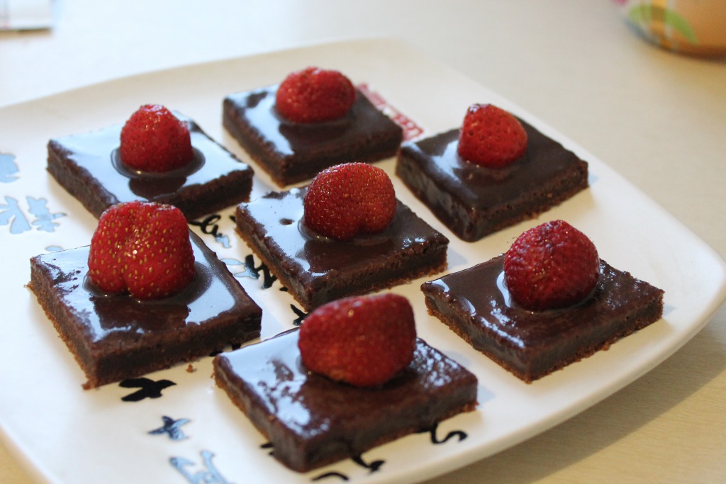 Вынуть корж из духовки. Через несколько минут залить его отложенной шоколадной смесью. Дать застыть в холодильнике и разрезать на квадраты. При подаче можно украсить ягодами, фруктами, кокосовой стружкой - всем, что душа пожелает!
