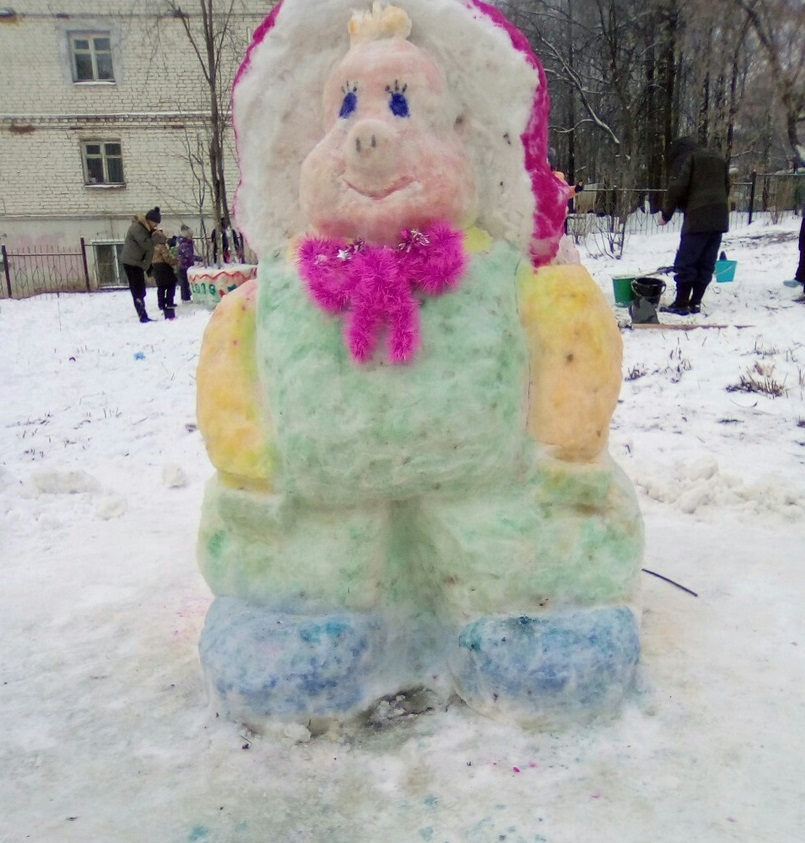 Около 40 школы (район "Дружбы") появился снежный поросенок.
