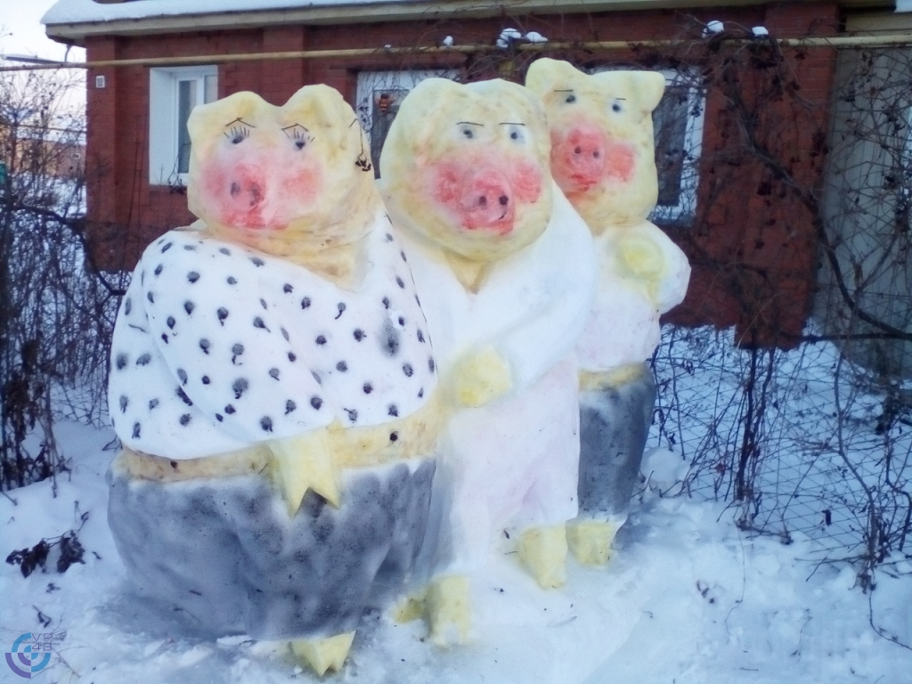 Приближается радостное событие – Новый год, а это значит, кировчане и жители области начали делать ледяные и снеговые скульптуры с символом года - Желтой Свиньей.