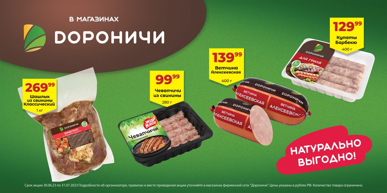Прямо сейчас в фирменной сети магазинов “Дороничи” проводится новая акция – выгодные цены на мясные продукты для пикника!