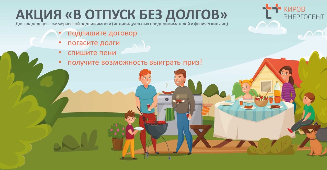 Кировский филиал "ЭнергосбыТ Плюс" проводит акцию "В отпуск без долгов" для владельцев коммерческой недвижимости. Победители получат ценные призы от компании, а участникам акции спишут начисленные пени.