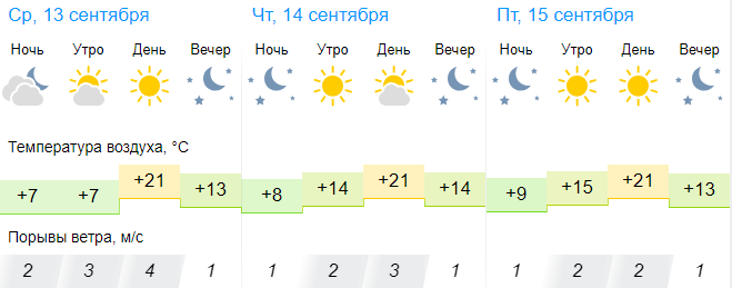 По данным синоптиков, осадков не ожидается ни в один из дней. Однако дожди могут наступить в субботу, 16 сентября.