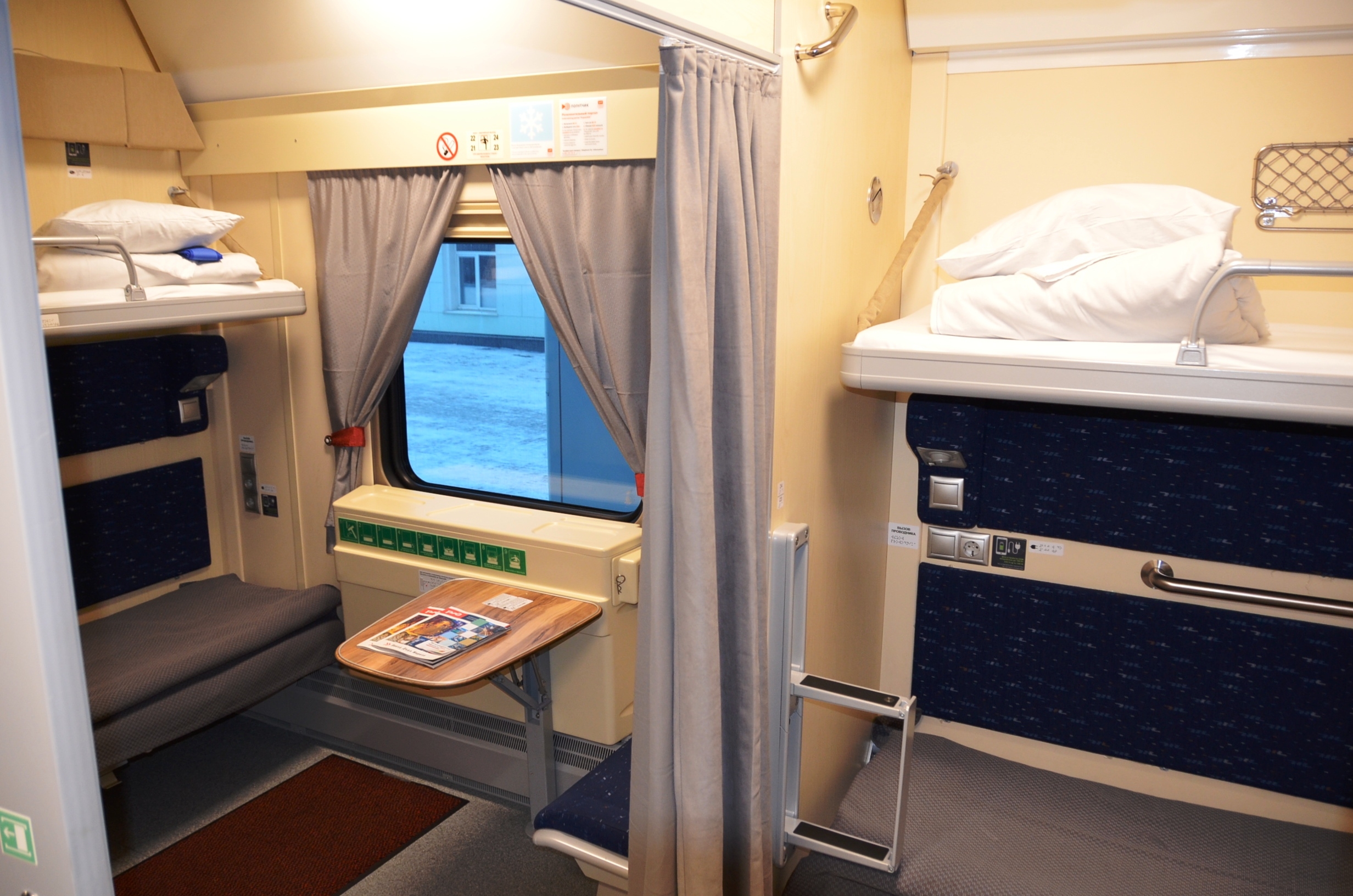 Пассажиры могут оценить обновления в вагонах: в них работает система климат-контроля, санитарные комнаты экологически чистые, каждое место оснащено розетками и USB-разъемами для зарядки мобильных устройств и табличками со шрифтом Брайля. Боковые места дополнительно оснащены светильниками. Кроме того, в каждом вагоне установлена душевая кабина, имеется столик для пеленания младенцев.