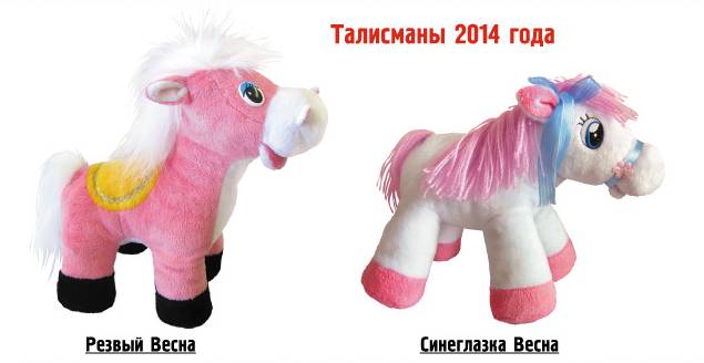 Став талисманом жизни хотя бы на один, 2014 год, это красивое благородное животное может помочь нам в исполнении добрых намерений. Игрушечные лошадки-талисманы от фабрики игрушек «Весна» станут хорошим новогодним подарком вашим друзьям, близким, коллегам. Приобрести символы года можно в фирменных магазинах фабрики игрушек "Весна".