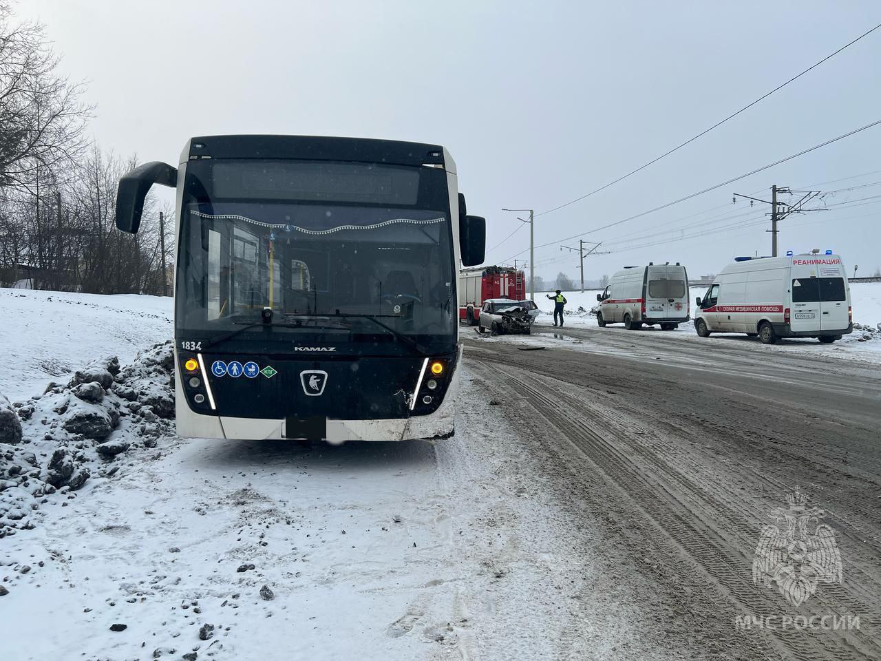 В Кирове столкнулись автобус и легковушка: пострадавших из салона доставали спасатели
