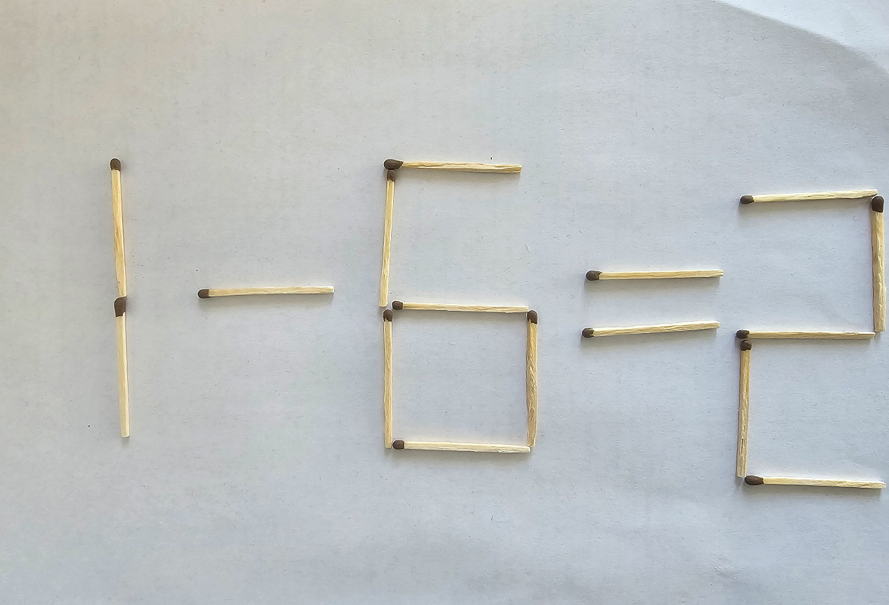 Перед вами неверное равенство: "1-6=2". Ваша задача – переложить всего одну спичку так, чтобы равенство стало абсолютно верным. Кажется невозможным? Не спешите сдаваться! Помните, главное – мыслить нестандартно и не бояться экспериментировать.