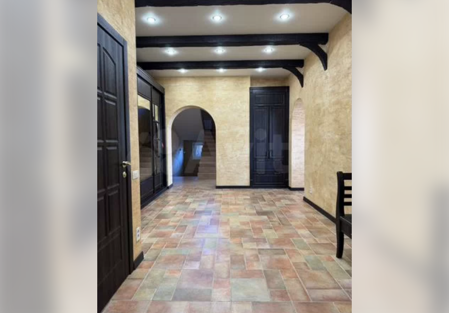 Видеонаблюдение установлено пo периметру. В доме висят итальянские хрустальные люстры, а пол сделан из немецкого ламинат.