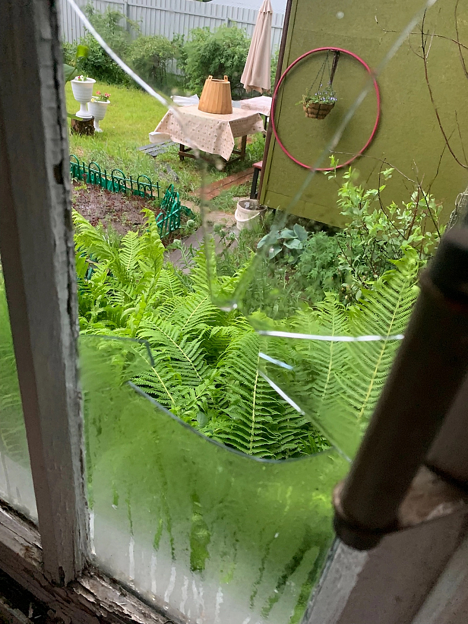 Одной из жительниц Лянгасово градом разбило стекло окна.
