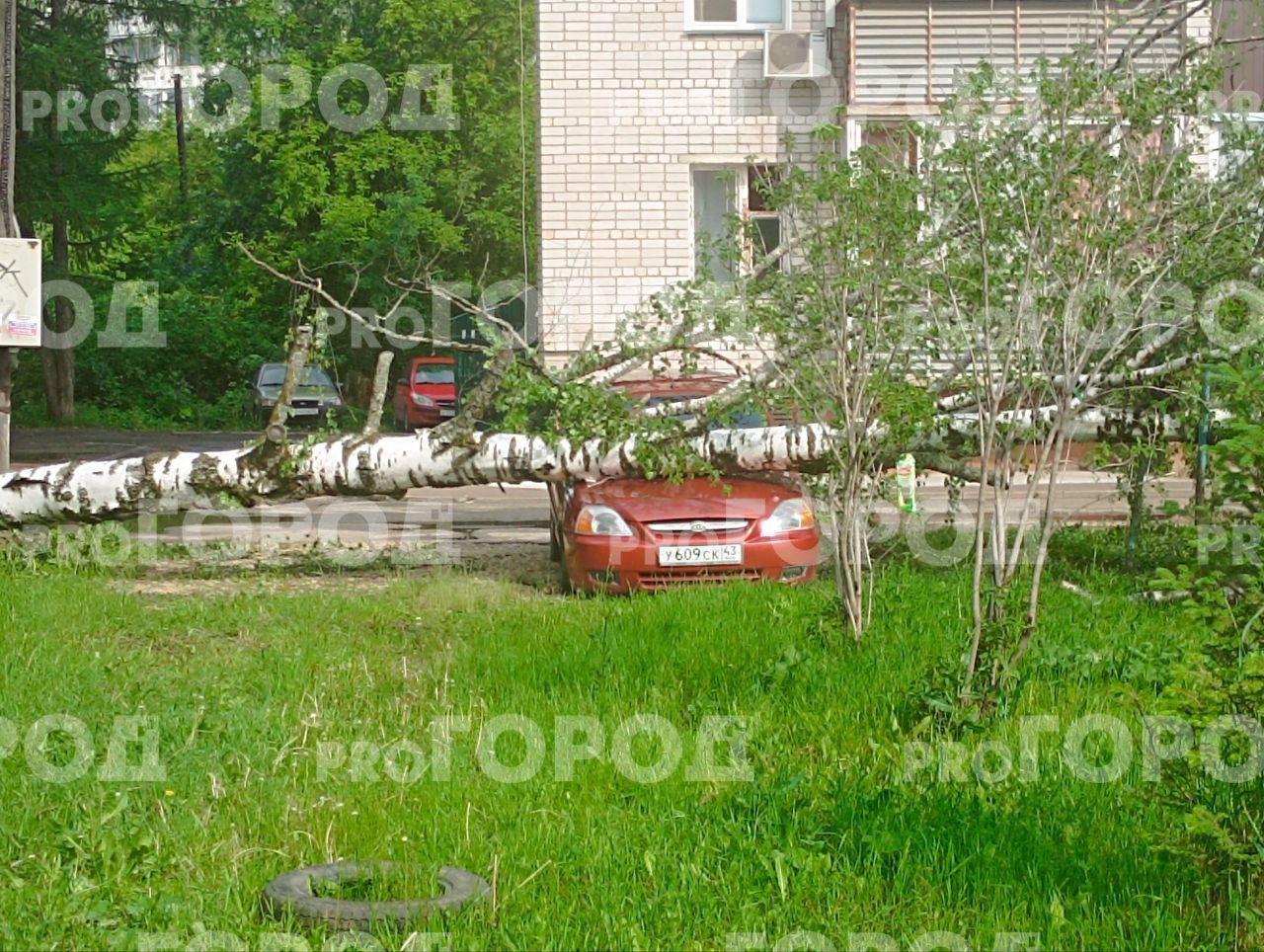 В Нововятске в одном из дворов на улице Кутузова береза упала на легковушку.