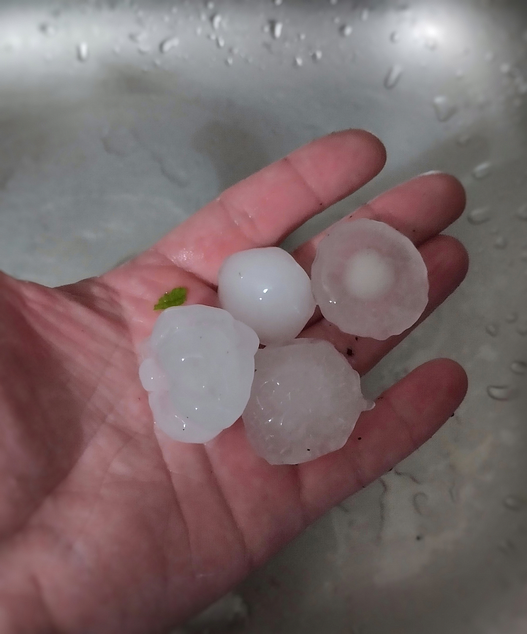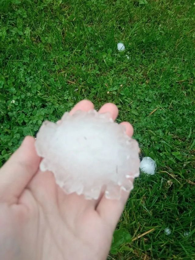 Жители Санчурска поделились фото крупным шиповидный суперячейковым градом диаметром около 5-7 сантиметров.