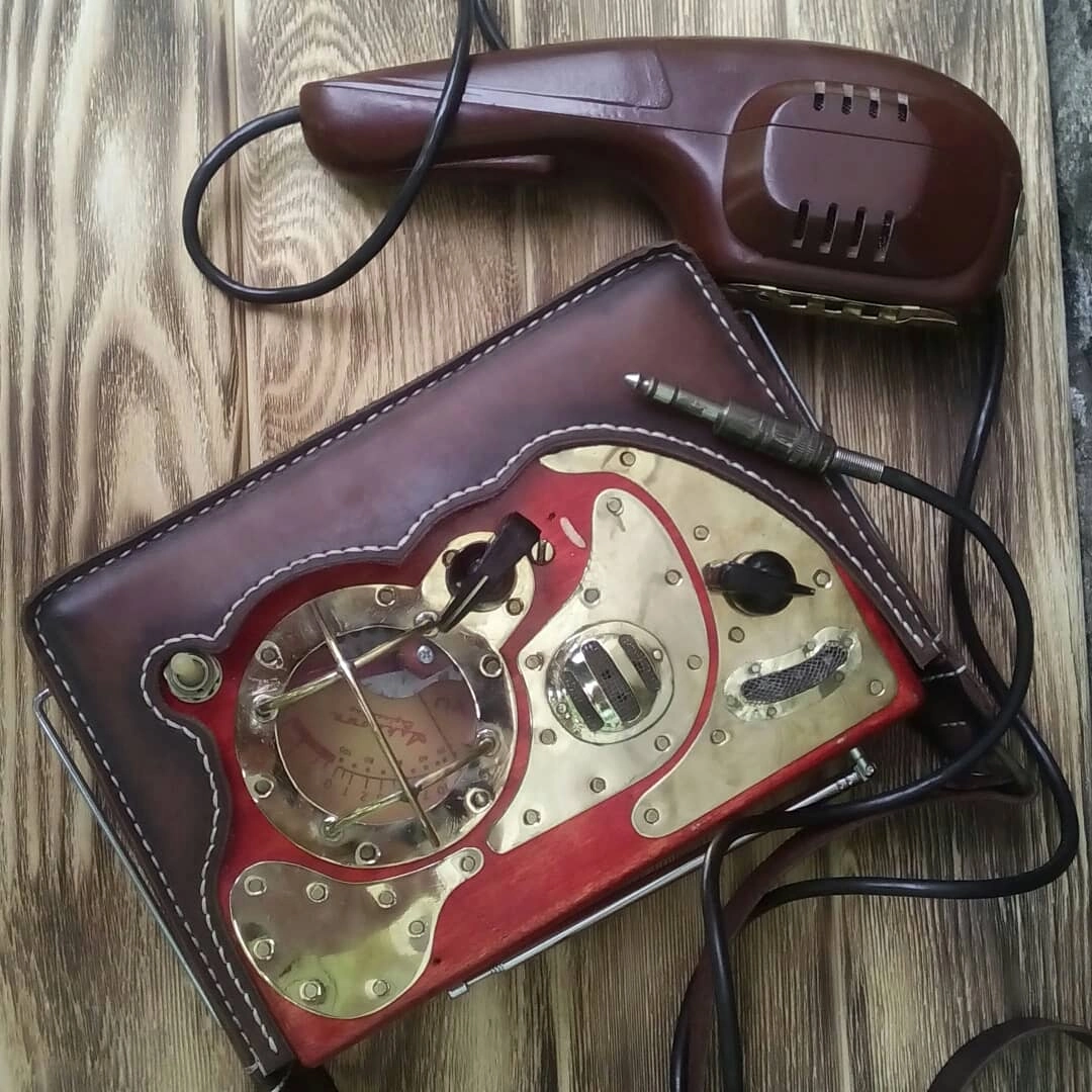 В основном Александр использует в проектах дерево и листовой металл (сталь, медь, латунь) и кожу.