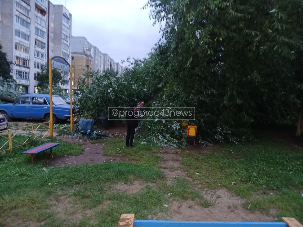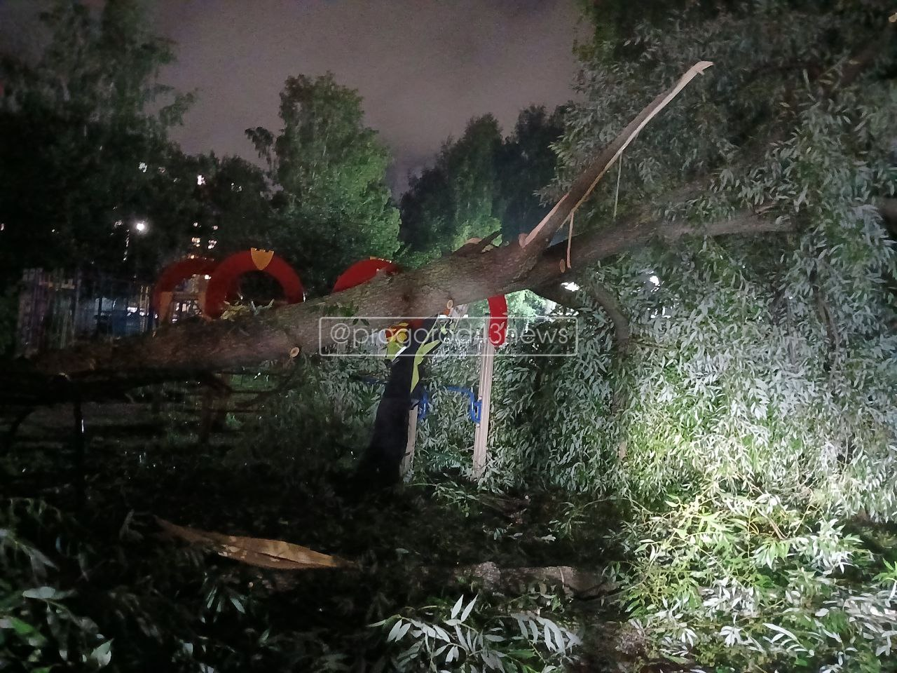 Во дворе на улице Волкова два огромных тополя рухнули на детскую площадку