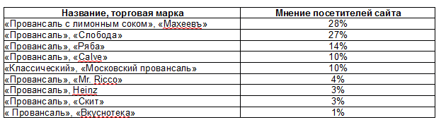 Всего в опросе на сайте www.aif.ru приняли участие 950 человек — такому количество опытных любителей майонеза можно верить.