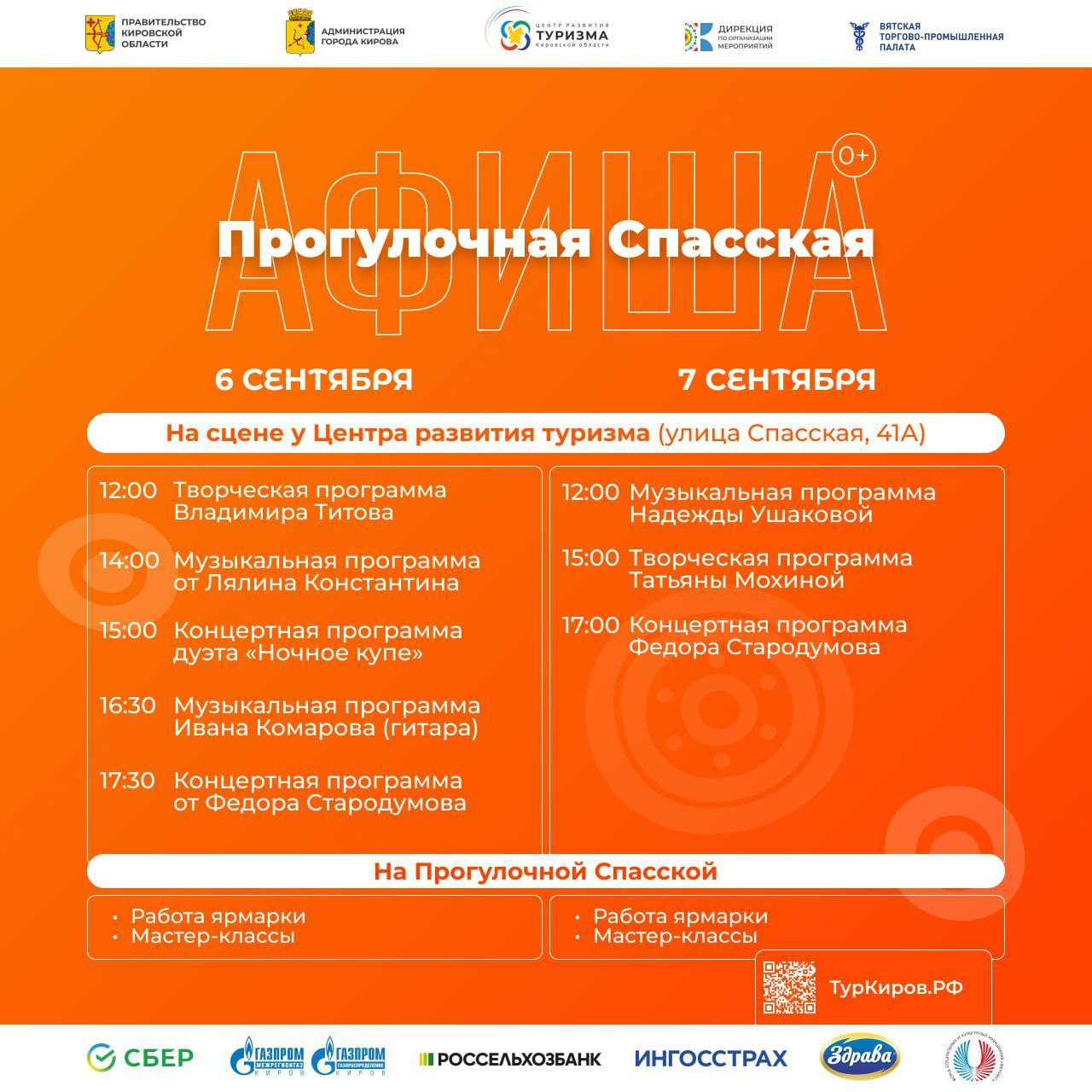 Афиша мероприятий, которые пройдут в эти выходные, 6-7 сентября, на Прогулочной Спасской в Кирове.