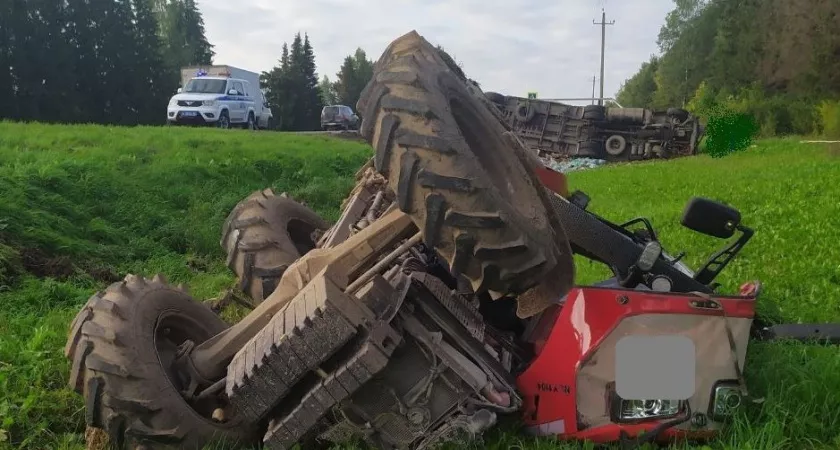В Котельничском районе трактор столкнулся с большегрузом. Подробности аварии и фото с места предоставили в пресс-службе региональной Госавтоинспекции.