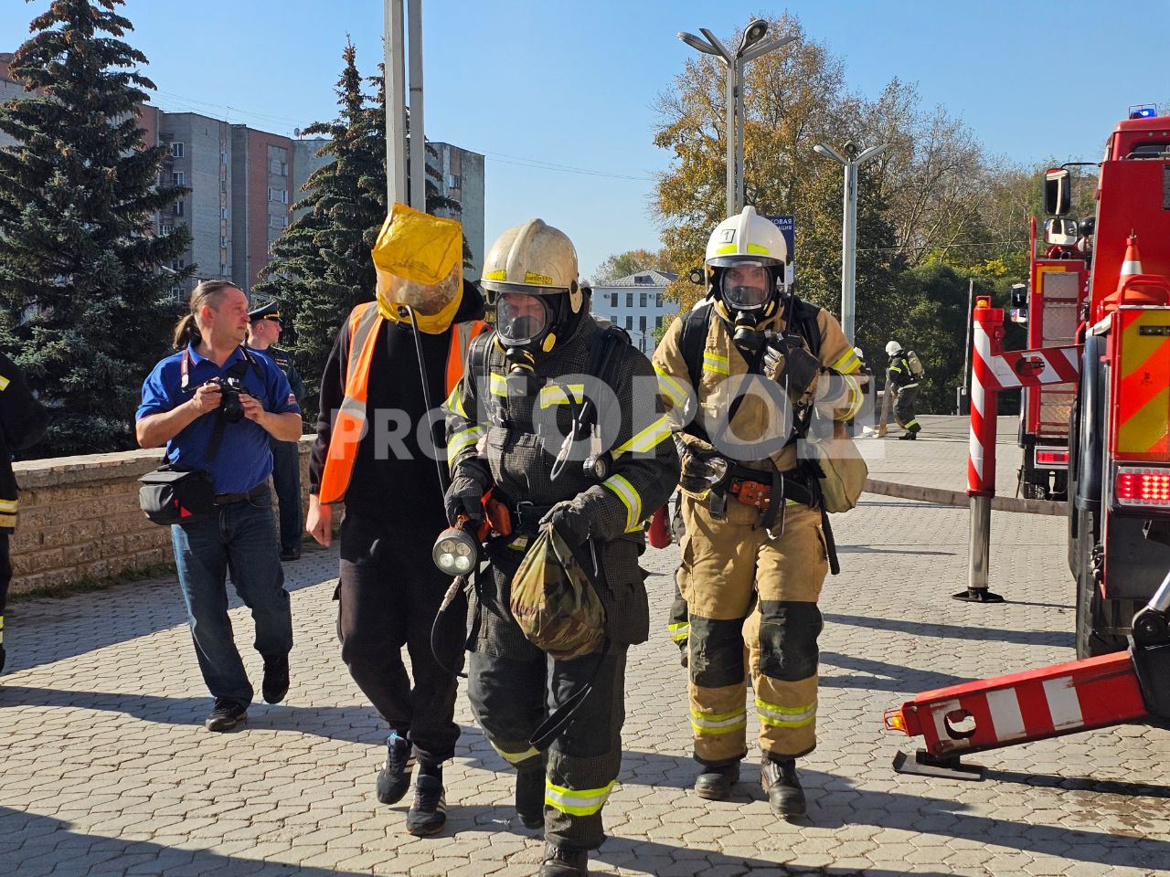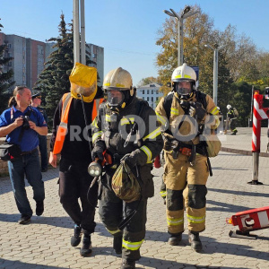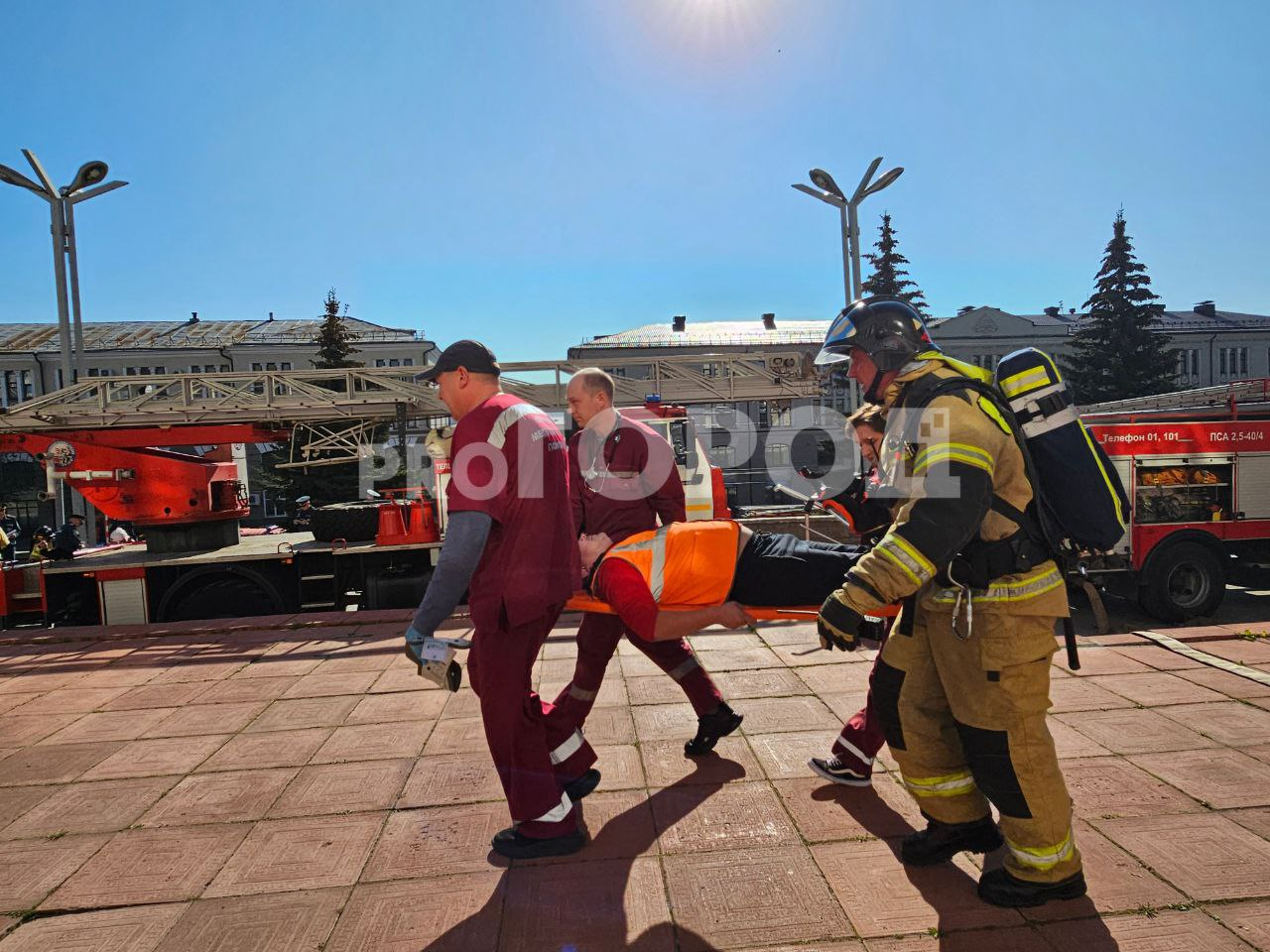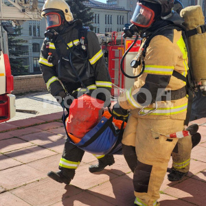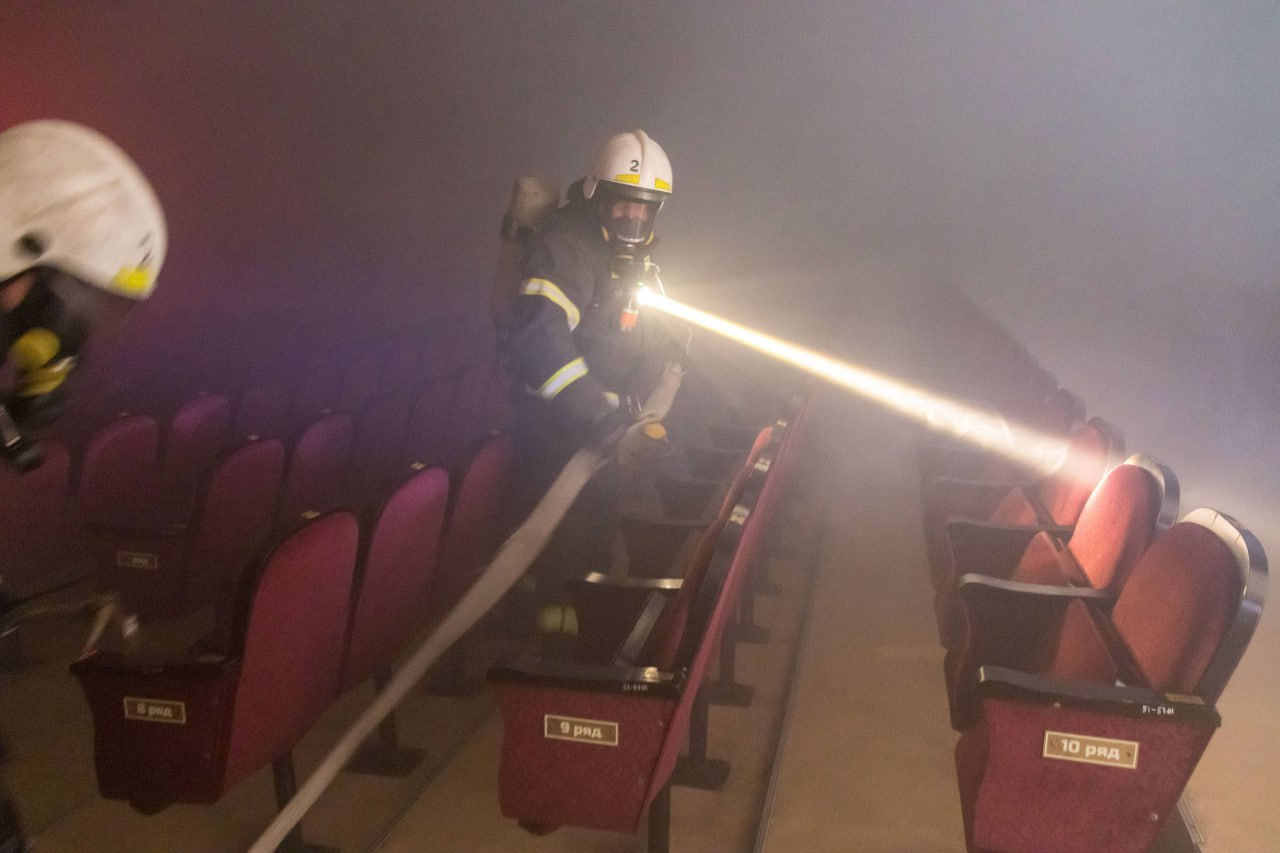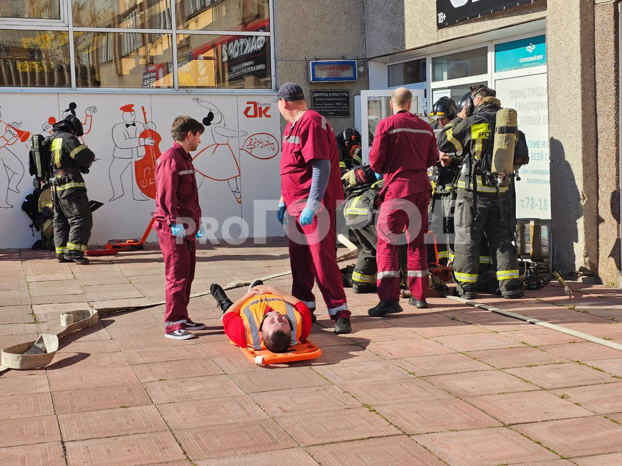 В условиях задымления и узких коридоров спасателям предстояло найти несколько человек в разных уголках ДК и эвакуировать их, в том числе, при помощи автолестницы.